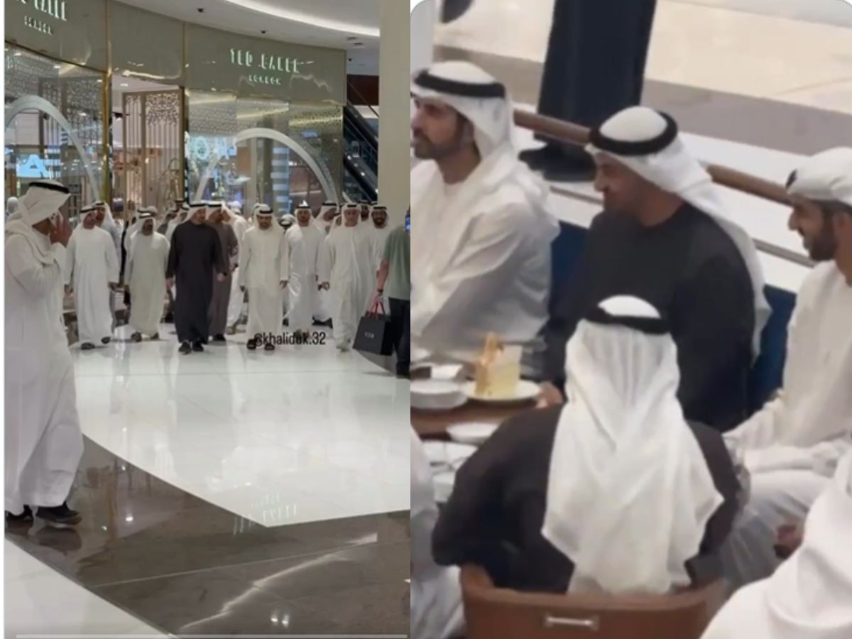 UAE President Sheikh Mohamed and Sheikh Hamdan bin Mohammed, Crown Prince of Dubai, were seen having a meal and walking among shoppers and diners at Dubai Mall, with many greeting them and expressing happiness at the encounter.